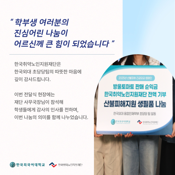 [2025년 산불피해 긴급모금 캠페인] 한국외국어대학교 초당당팀 생필품 후원